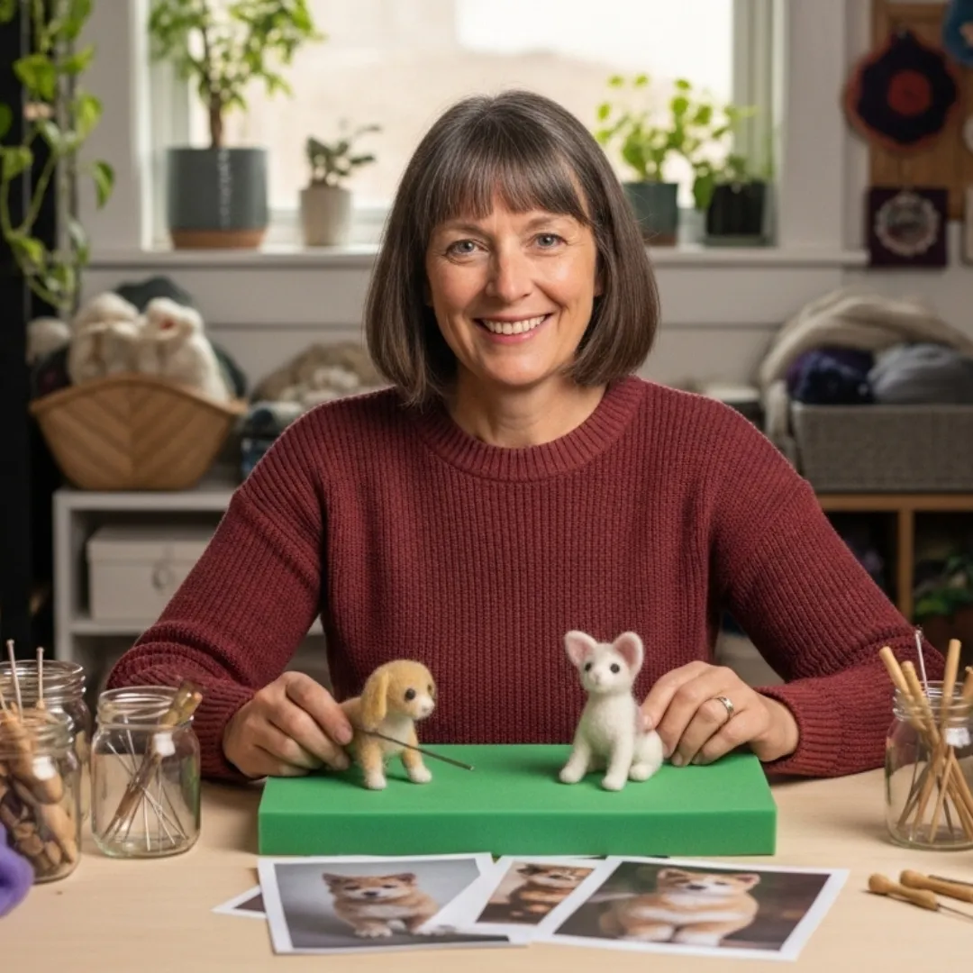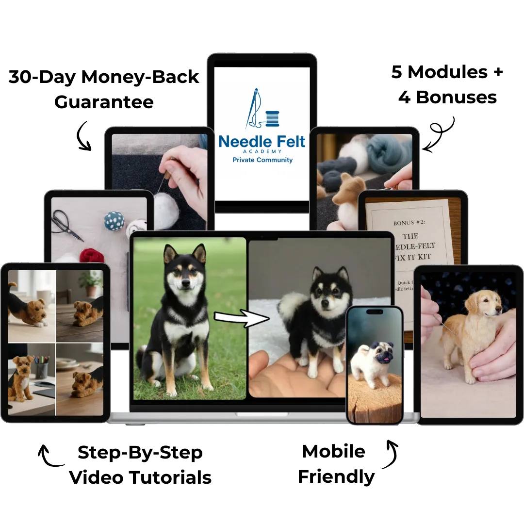 The only beginner-friendly workshop that guides you through creating a miniature, hand-felted replica of your dog — soft, detailed, and incredibly cute — using nothing more than wool, a needle, and a few simple techniques.
